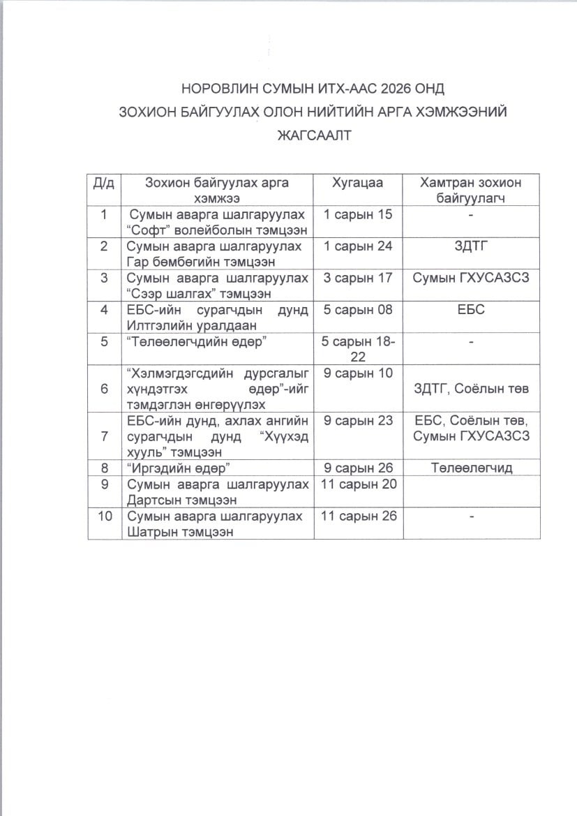 Олон нийтийн арга хэмжээний төлөвлөгөө