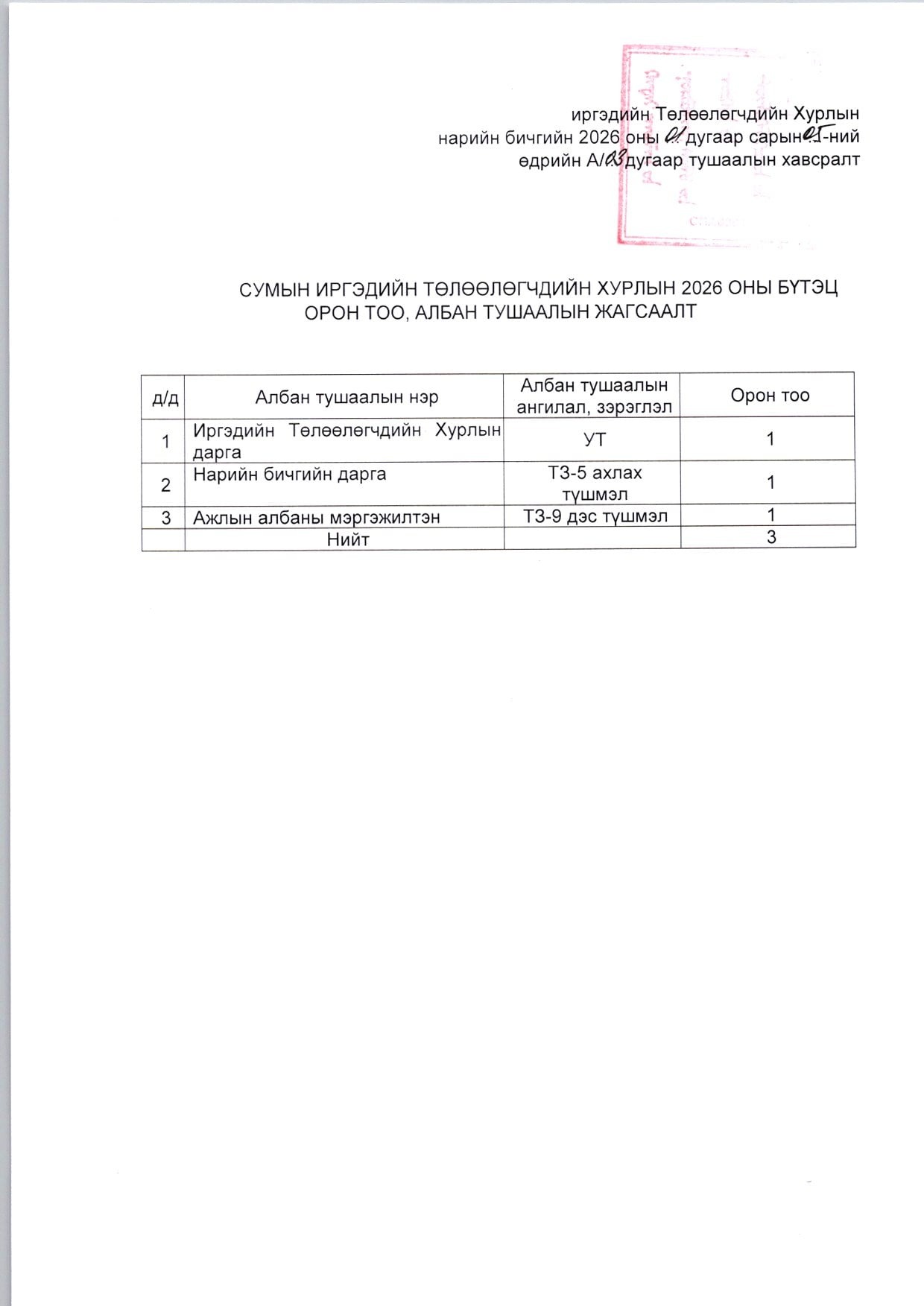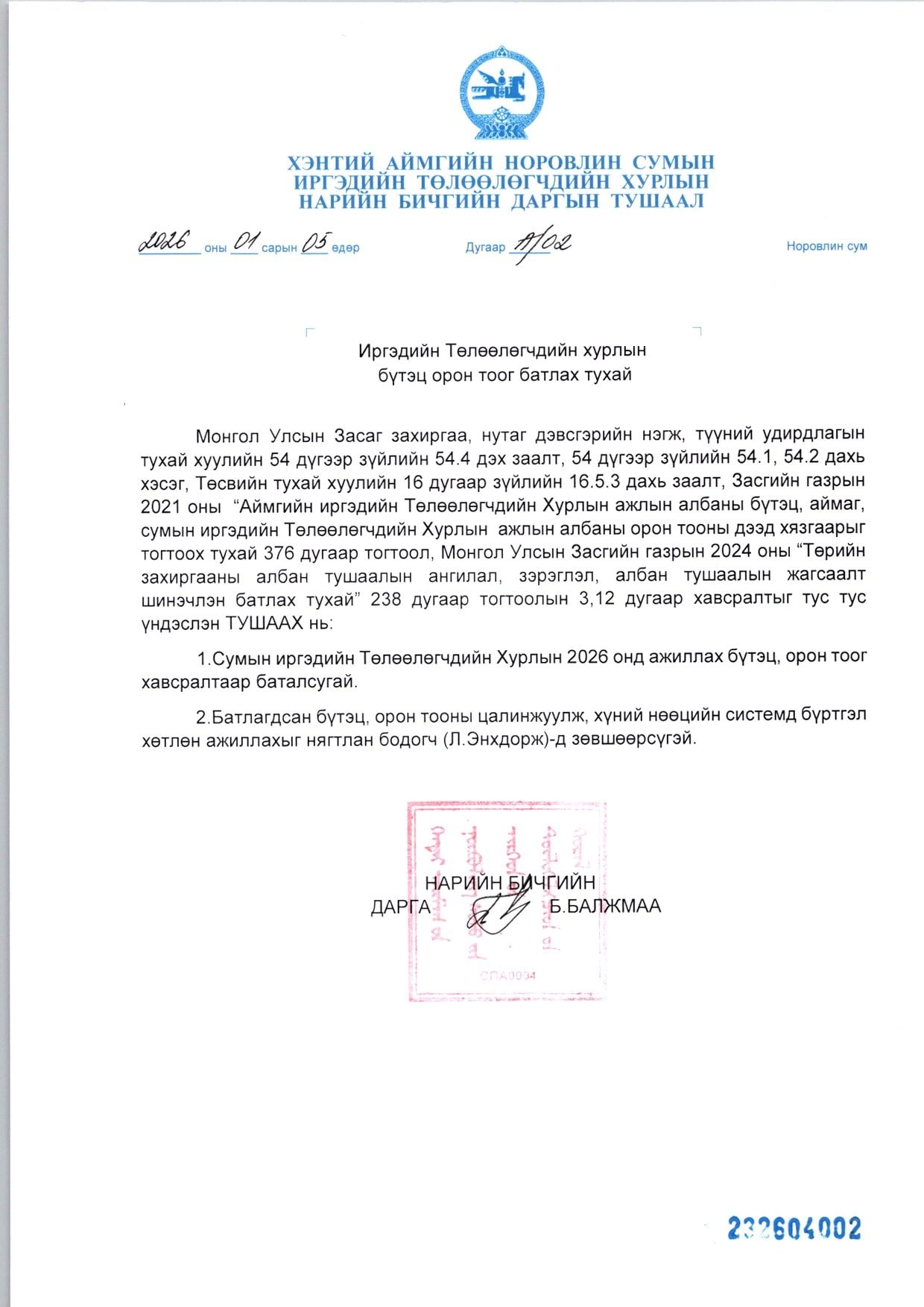 ТӨЛӨӨЛӨГЧДИЙН ТОГТООЛ 2019 ОН