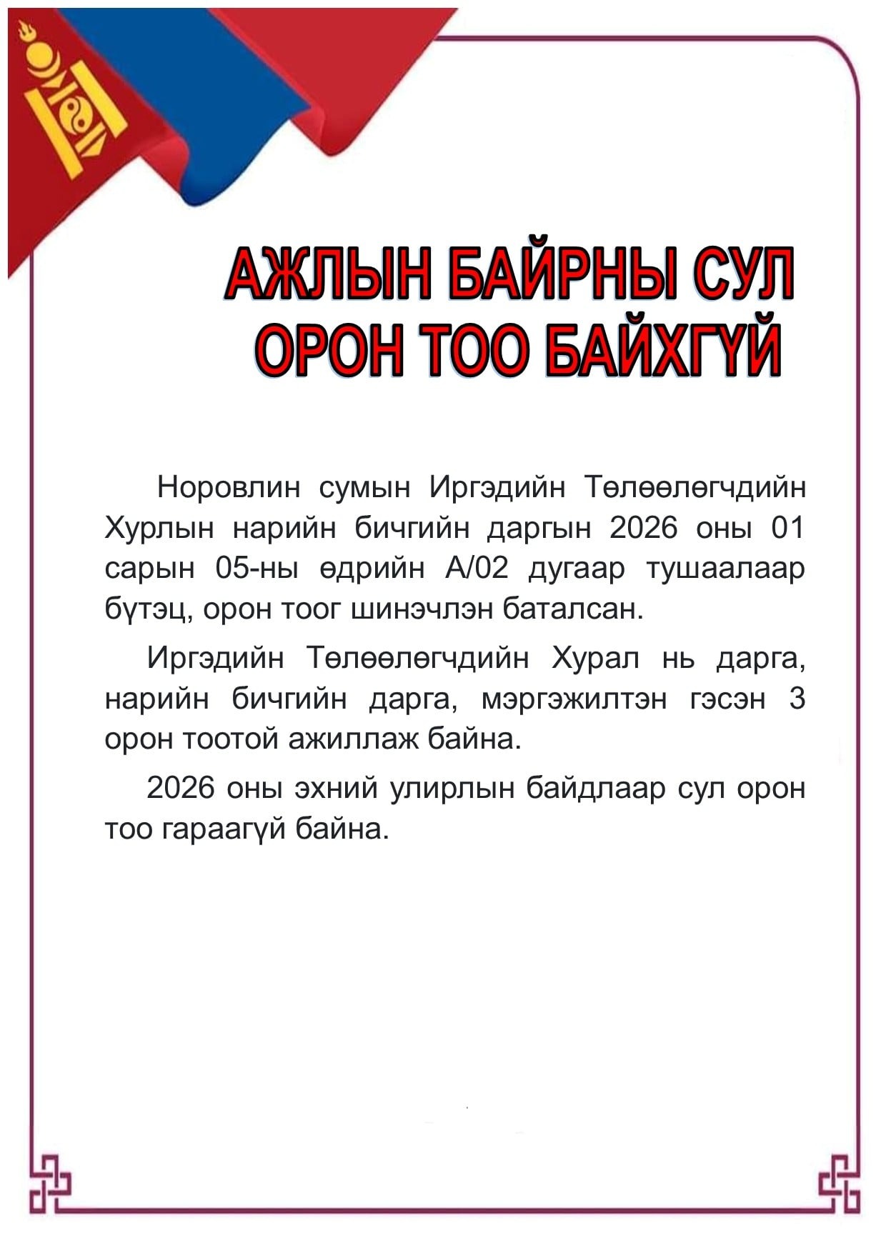 ТЭРГҮҮЛЭГЧДИЙН ТОГТООЛ 2018 ОН